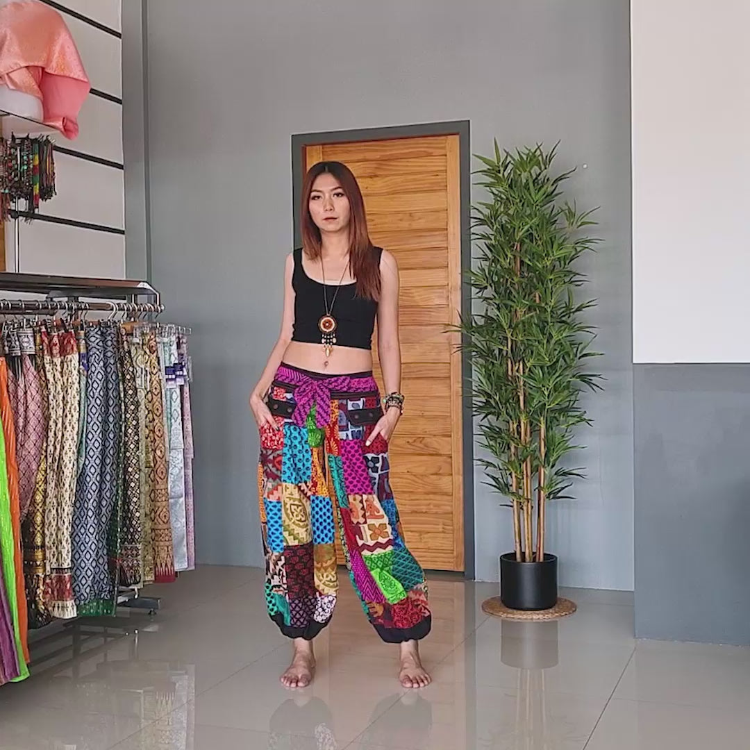 Unsere farbenfrohen Patchwork Haremshosen spiegeln die spirituelle Vielfalt Thailands wider und werden mit viel Liebe im Herzen des Landes handgefertigt.