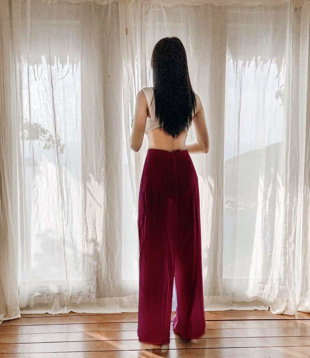 Unsere Wickelhosen werden aus 100% Bambus Rayon (auch bekannt als Viskose) handgefertigt.