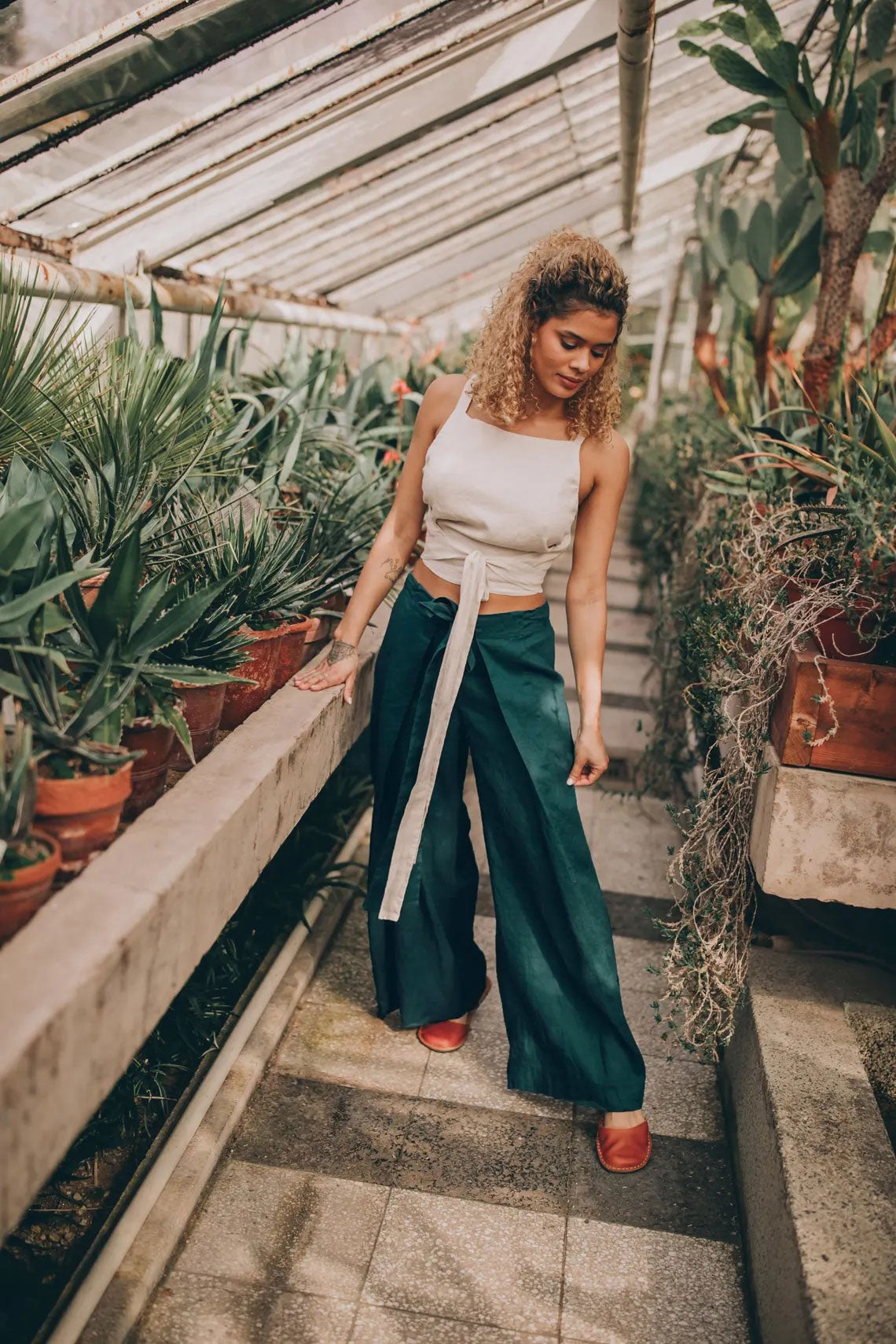 Unsere Wickelhosen werden aus 100% Bambus Rayon (auch bekannt als Viskose) handgefertigt.