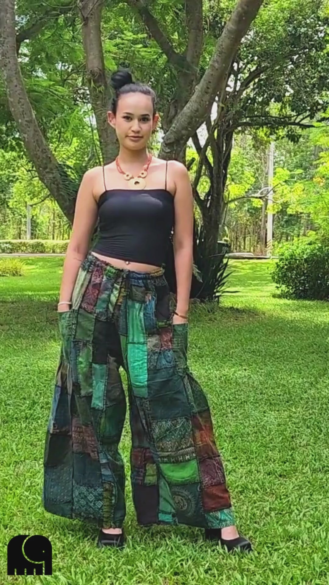 Unsere farbenfrohen Patchwork Hippie Schlaghosen spiegeln die spirituelle Vielfalt Thailands wider und werden mit viel Liebe im Herzen des Landes handgefertigt.