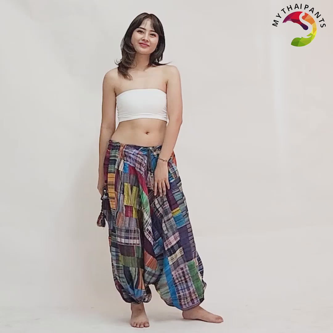 Unsere farbenfrohen Patchwork Haremshosen spiegeln die spirituelle Vielfalt Thailands wider und werden mit viel Liebe im Herzen des Landes handgefertigt.