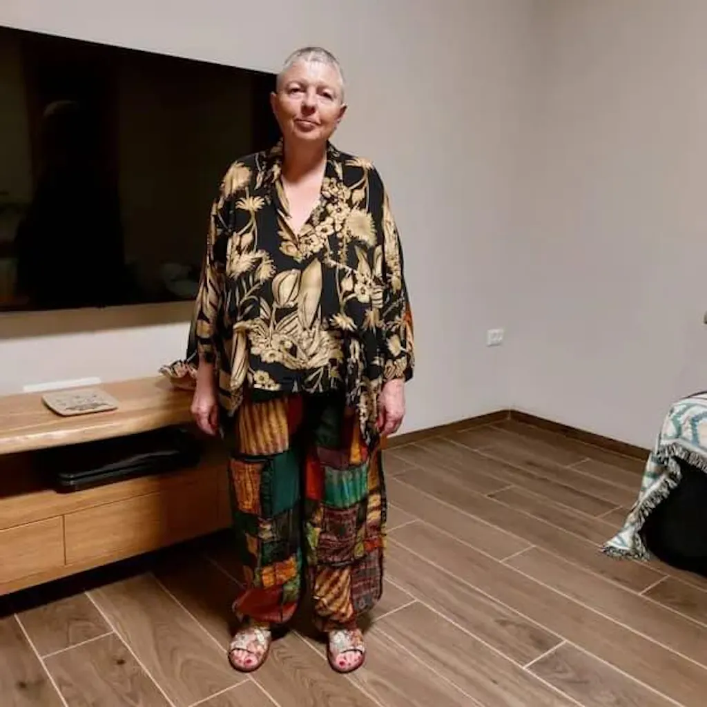I love these cotton pants with their bold, colorful patches. They always get compliments! The pockets are super practical, and they’re incredibly comfortable to wear.