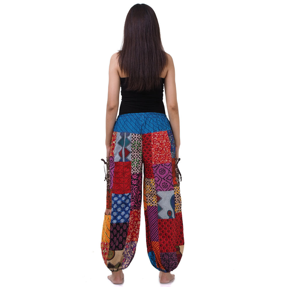 Our colorful patchwork harem pants are handmade with 100% cotton.
